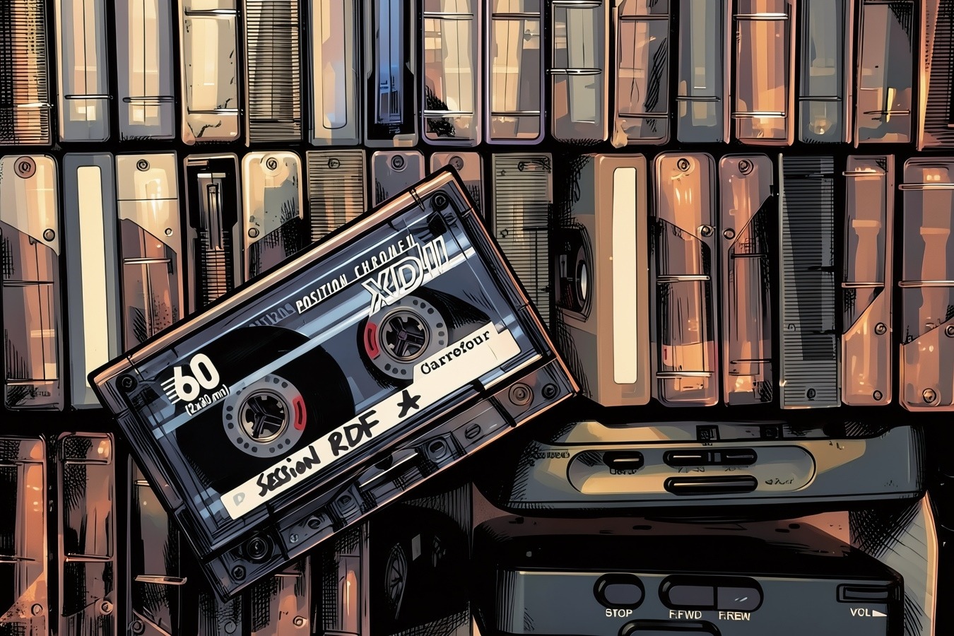 Après ce premier projet, l’activité du RDF s’est surtout poursuivie autour de sessions freestyle enregistrées à la maison. À l’époque, on disait simplement : “Viens, on fait une session.” Péotéka installait alors le matériel avec les moyens disponibles : une chaîne hi-fi, un micro branché dessus, une source pour lancer les instrumentales - souvent un CD ou un MiniDisc - et une cassette audio pour enregistrer le tout.